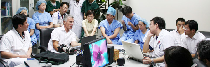 图为克利夫兰医学中心PPH专家Dr.Durant与武汉博仕中医肛肠医院专家组进行交流