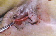 Ⅲ期肛裂:肛管除有溃疡(溃疡如2期肛裂)外,肛管纤维化、狭窄,出现裂痔、肛乳头肥大或因肛裂感染形成裂瘘,有并发症直接影响溃疡严重程度。>>点击查看图片