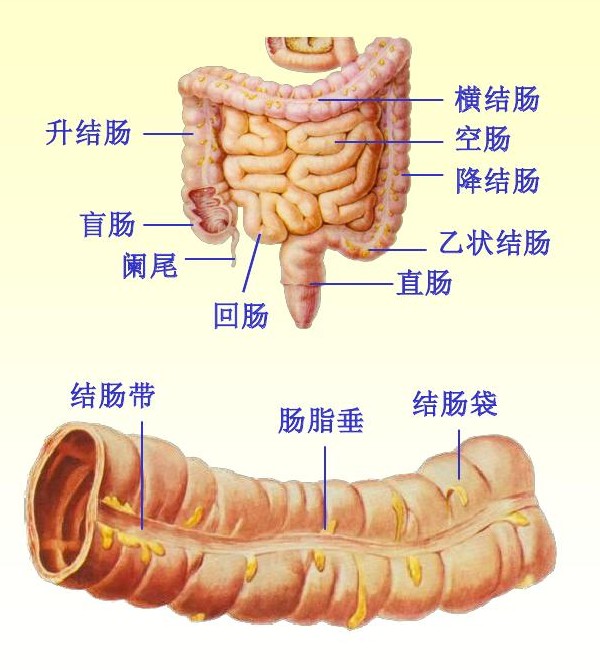 大肠是主要吸收食物残渣中的水液,进而促进食物残渣自身形成粪便并有度排出体外的脏器,为消化道的下段,成人大肠全长约1.5m,起自回肠,包括可分为阑尾、盲肠、结肠、直肠和肛管5部分。 >>>大肠疾病有哪几类?