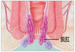 二、脱肛导致肠粘膜受损伤发生溃疡时,还可引起出血和腹泻。如脱出的肿物不能缩回,容易发生炎症、肿胀,则出现疼痛,进一步又加重便秘。