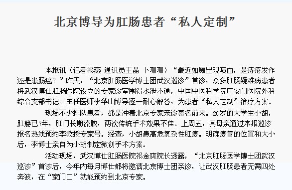 北京博导莅临武汉博仕肛肠医院为患者“私人定