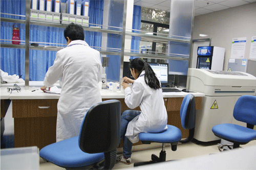 图为医院检验科医师正在摆调医疗实剂,让我们向这群“明察秋毫”的白衣天使们致敬!
