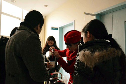 医院的护工阿姨,虽然现在医院还没有开业,她仍每天定时定次(5次)打扫病房,阿姨:您辛苦了!