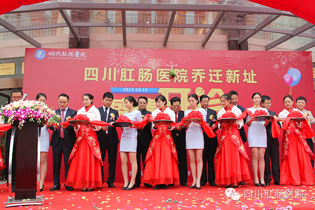 武汉博仕中医肛肠医院“乔迁新址,盛情开诊”的剪彩现场