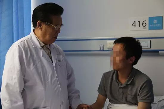 在查房中,曹院长看到一位年轻病患正在进行康复理疗,与患者和家人进行了亲切的询问和交谈,经其查看,当即对治疗效果表示肯定,并对该患者的主治医生诊疗水平给予了高度评价。