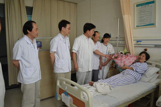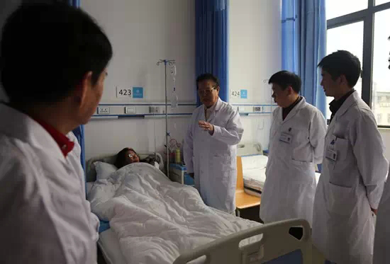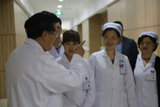 祁金爽院长一行接着来到了武汉博仕中医肛肠医院四楼的病房区亲自查房。曹院长仔细查看了病人的病情,作为肛肠学奠基人的他对患者目前的病情作出了专业的判断和讲解,并对患者的主治大夫提出了有益于病人恢复健康的几点建议。